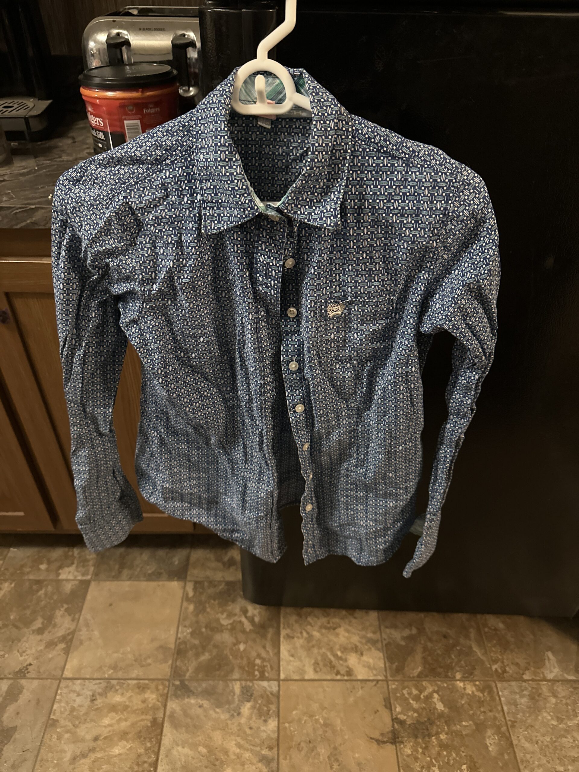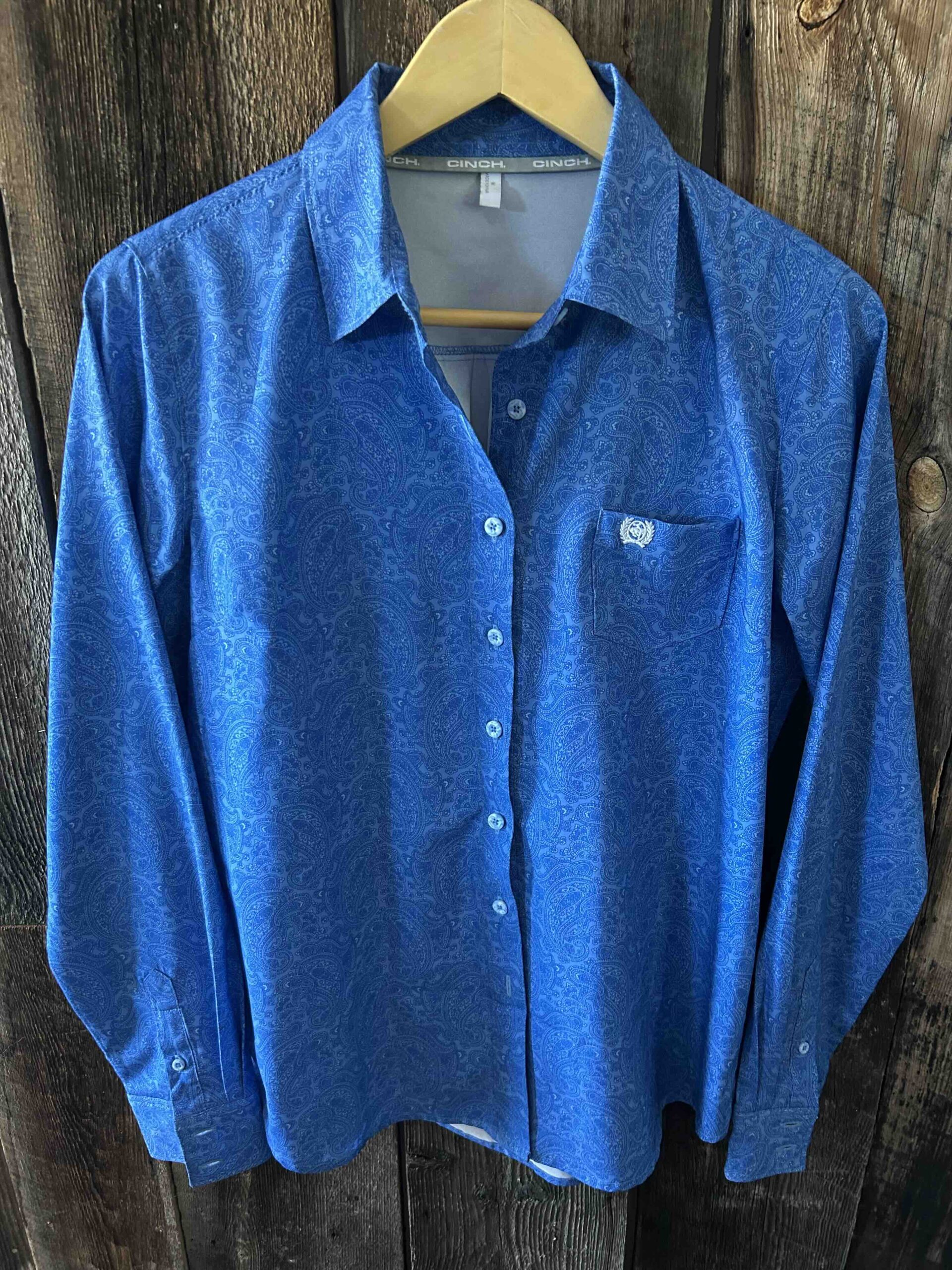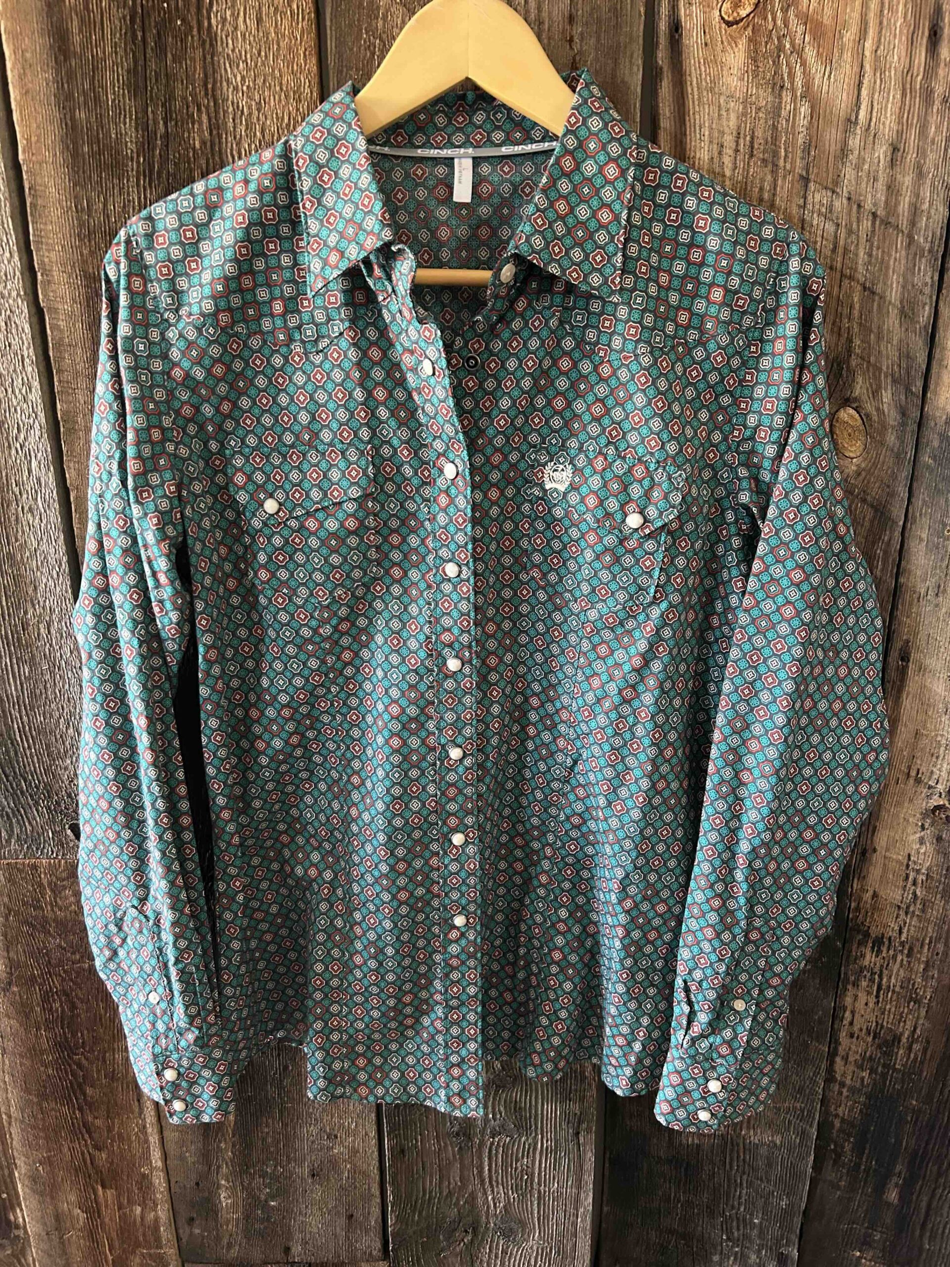 Cinch Teal Blue and Rust Paisley Button Up Western Shirt, Size L