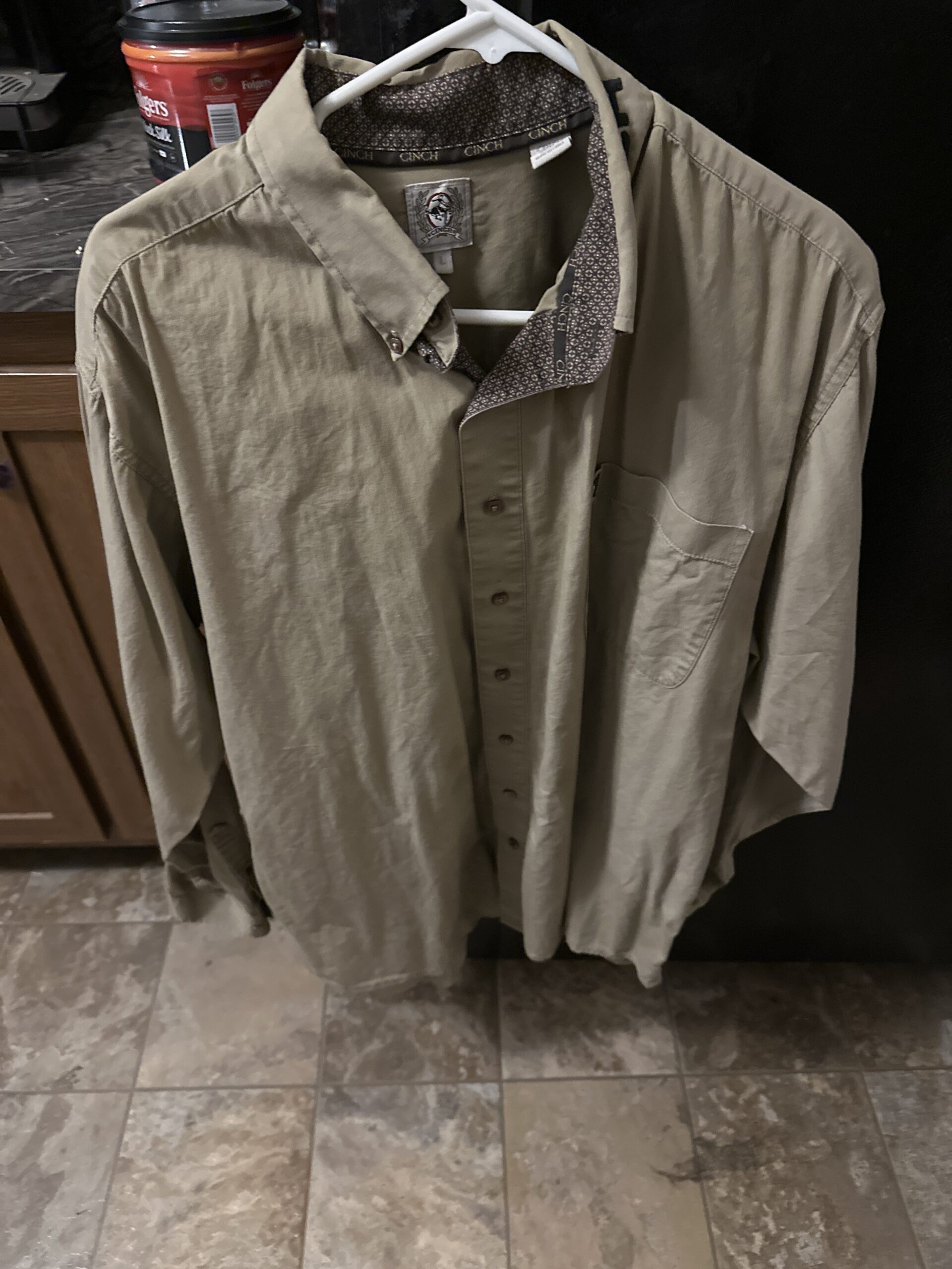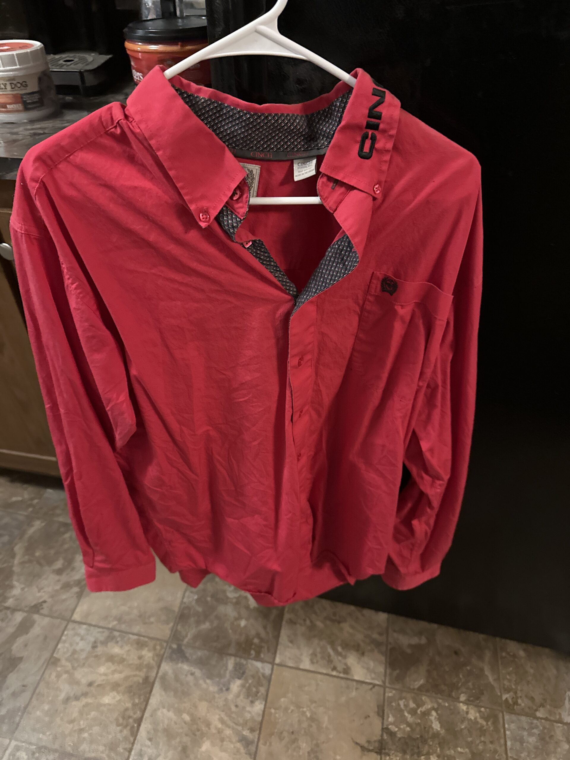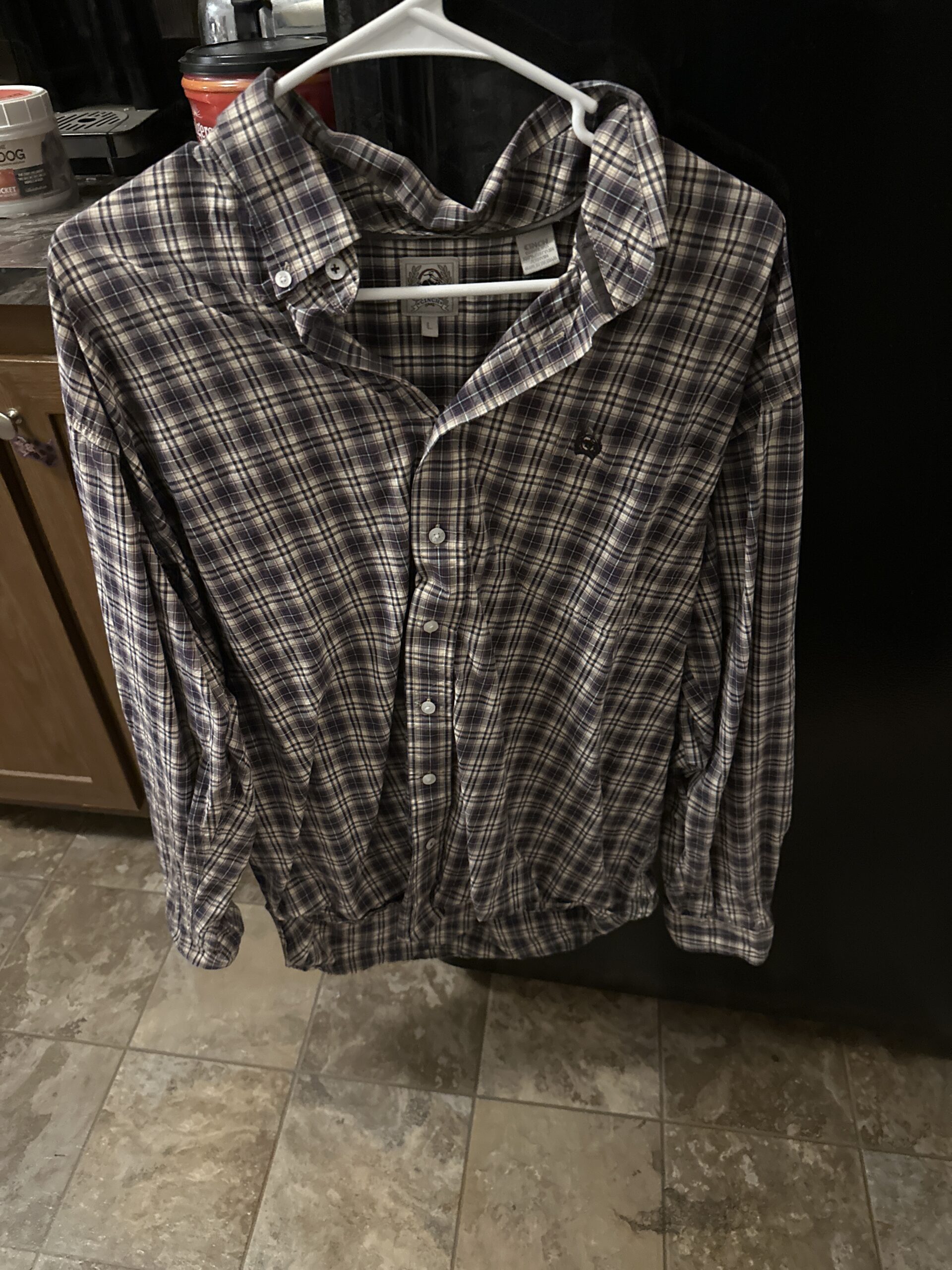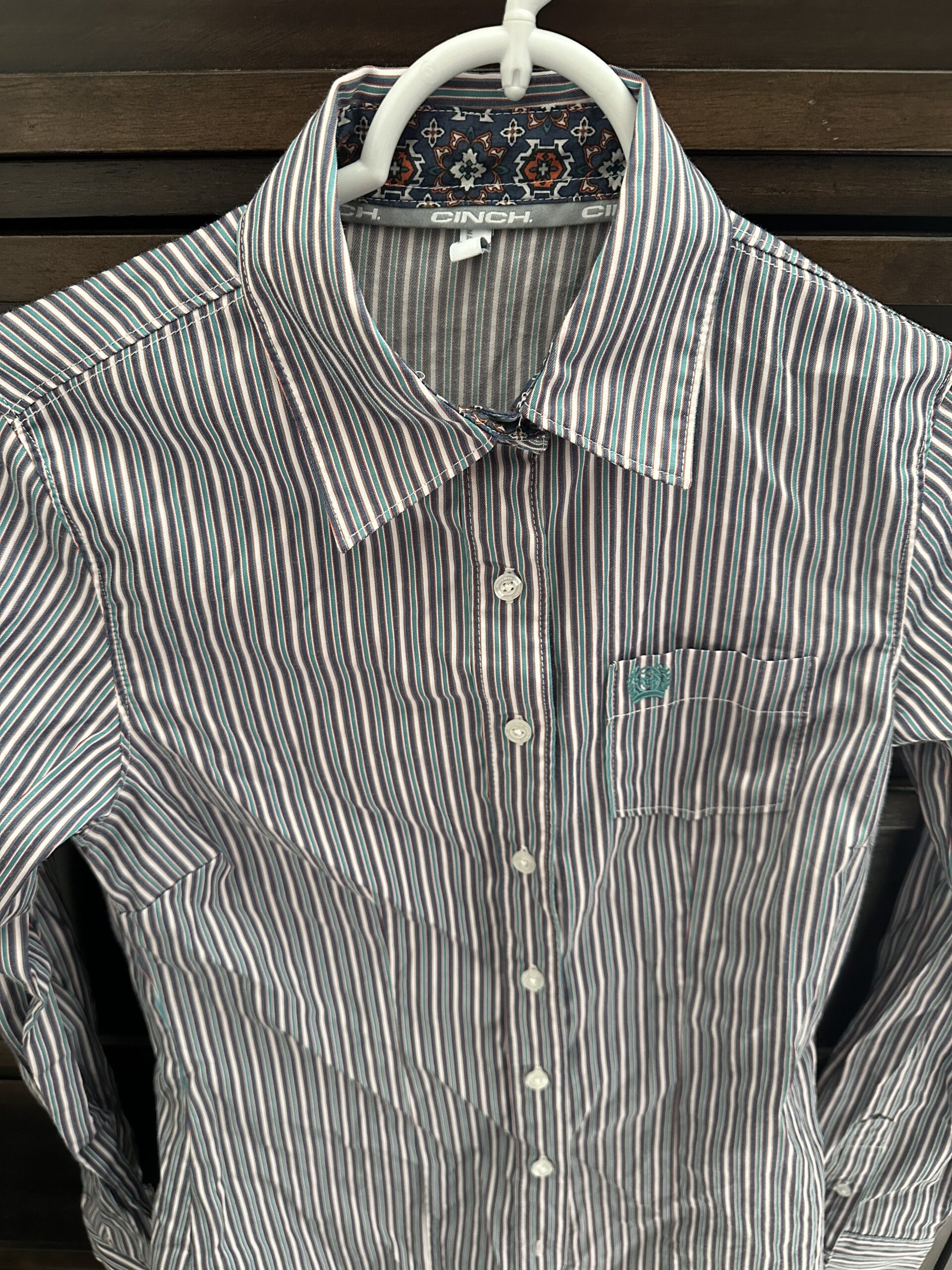 Cinch Teal Blue and Rust Paisley Button Up Western Shirt, Size L