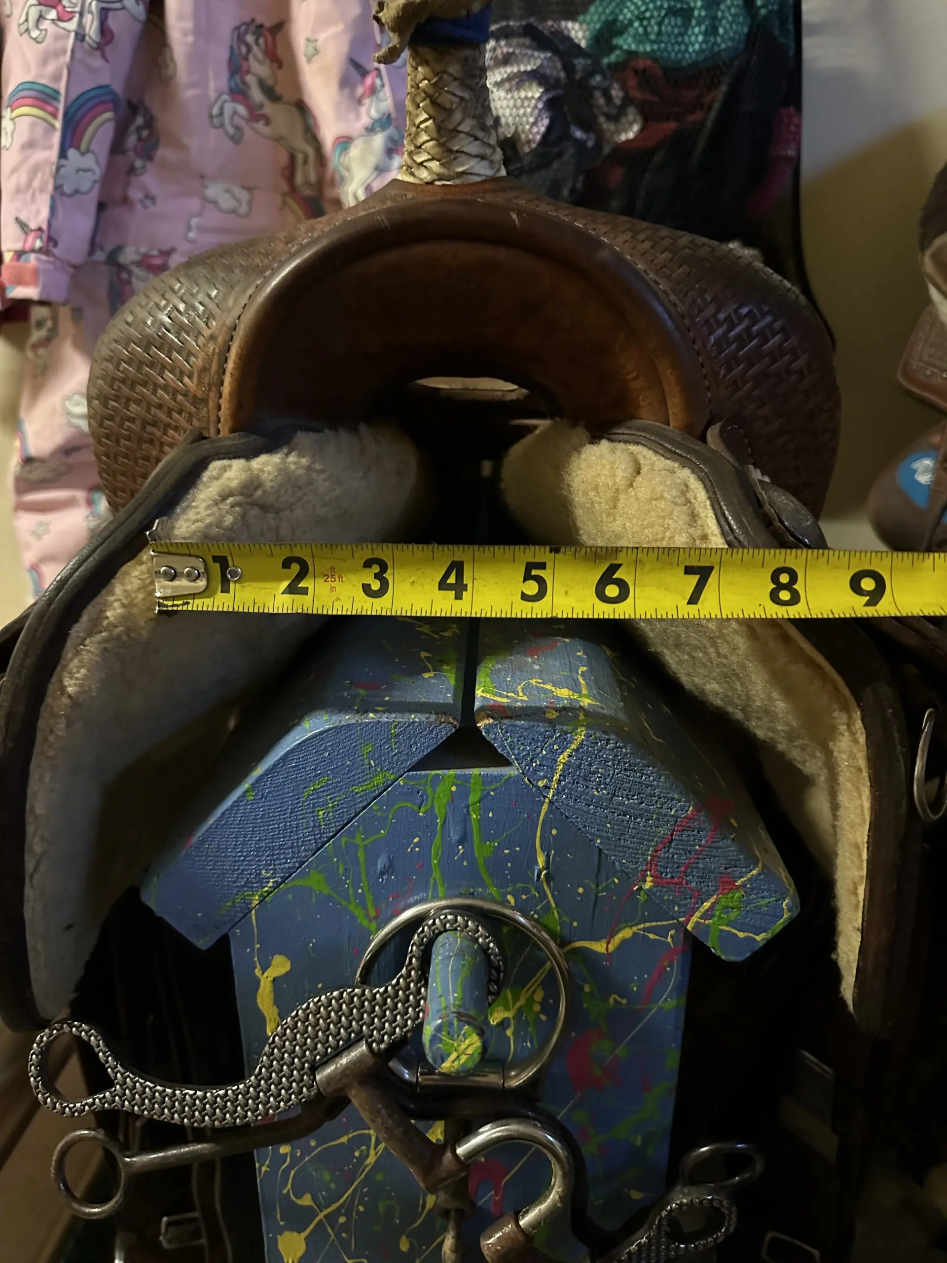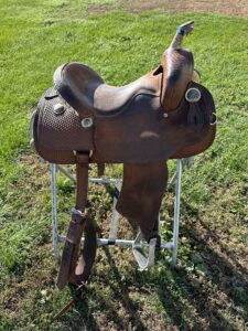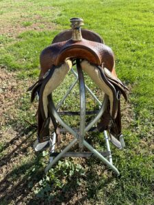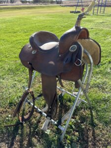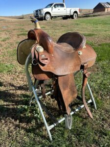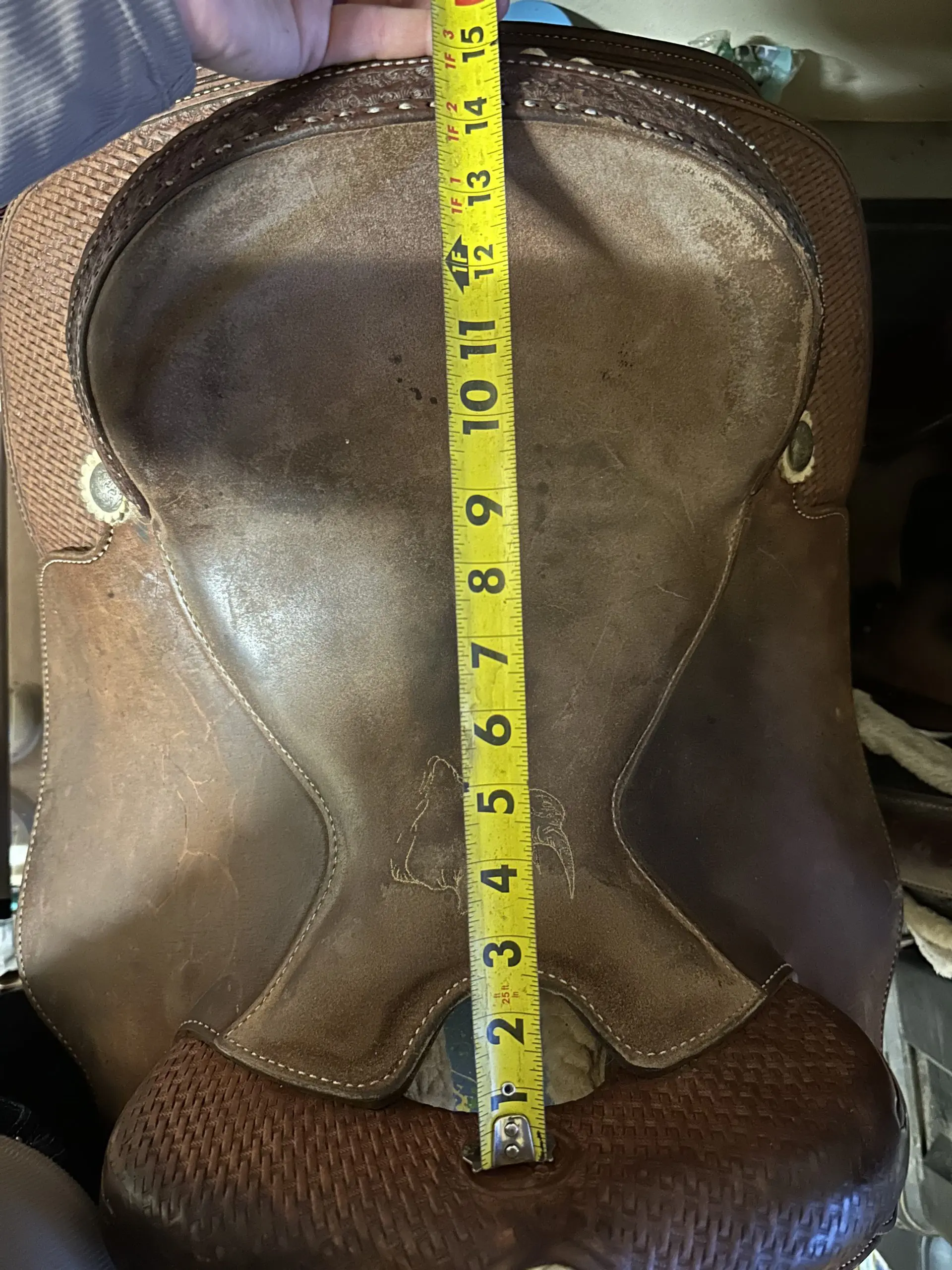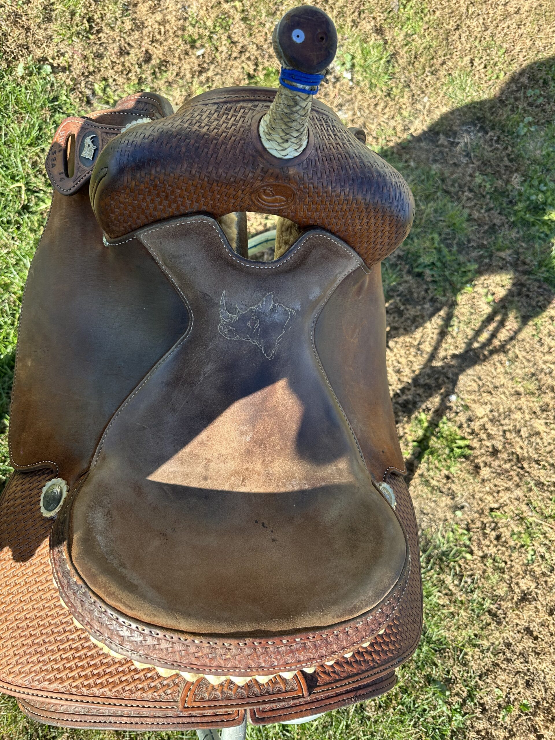 Horn rawhide has come loose – shown in pictures. Good quality saddle! Back cinch included.