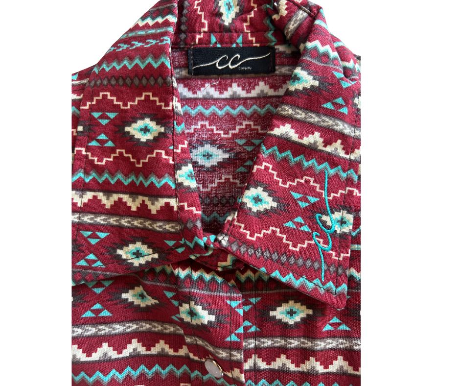 - HomeFor the RiderShirtsCC Western Signature Shirt Maroon/Rust/Turquoise Aztec Pearl Snap, size L