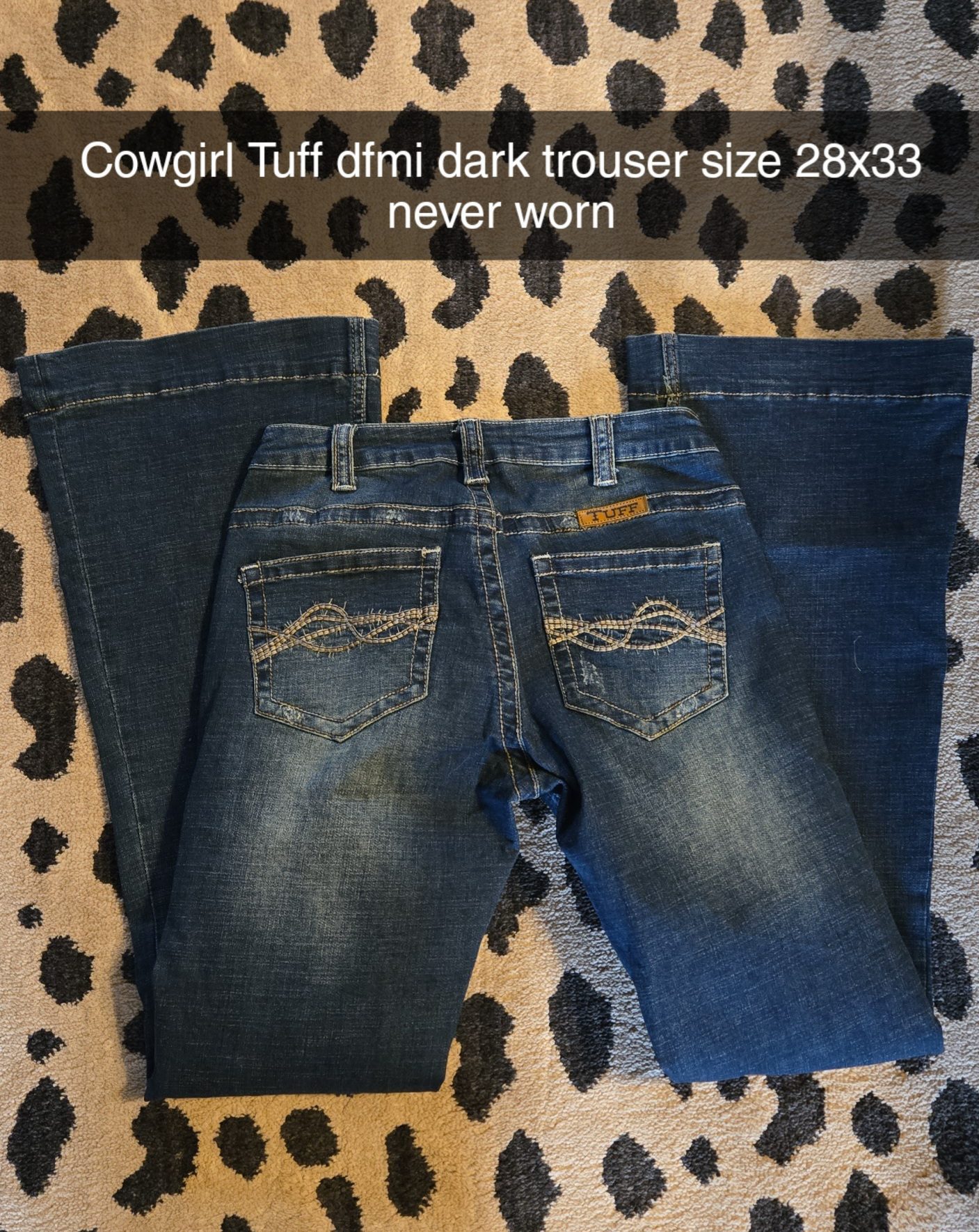 Never worn women’s cowgirl Tuff dfmi dark trouser size 28×33.