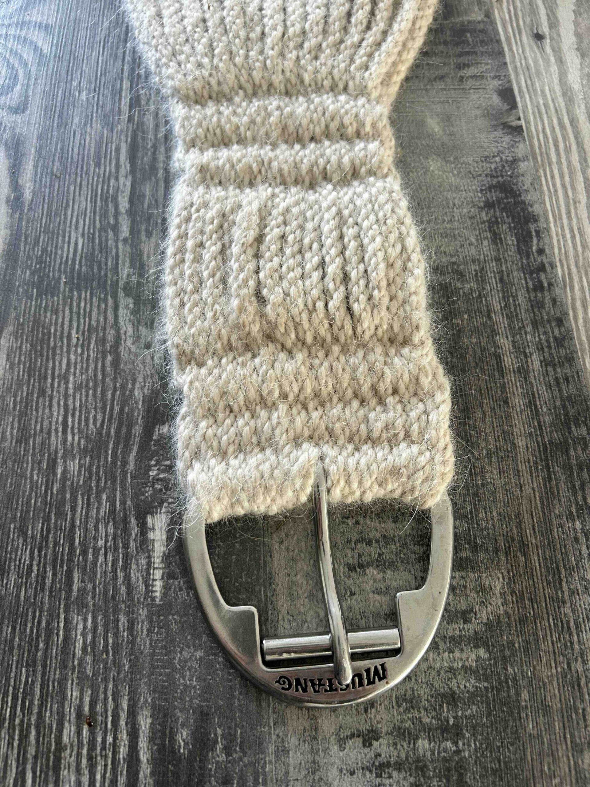 NEW condition. The Teskey’s Pro-Roller Champion Roper Cinch is a 27-strand mohair blend cinch with a leather sewn center, billet pocket and dual stainless tell Pro-Roller buckles. Additionally it features 1″ stainless steel dees that are inserted on the leather center. Cinch your horse effortlessly. Retail price is $79.99